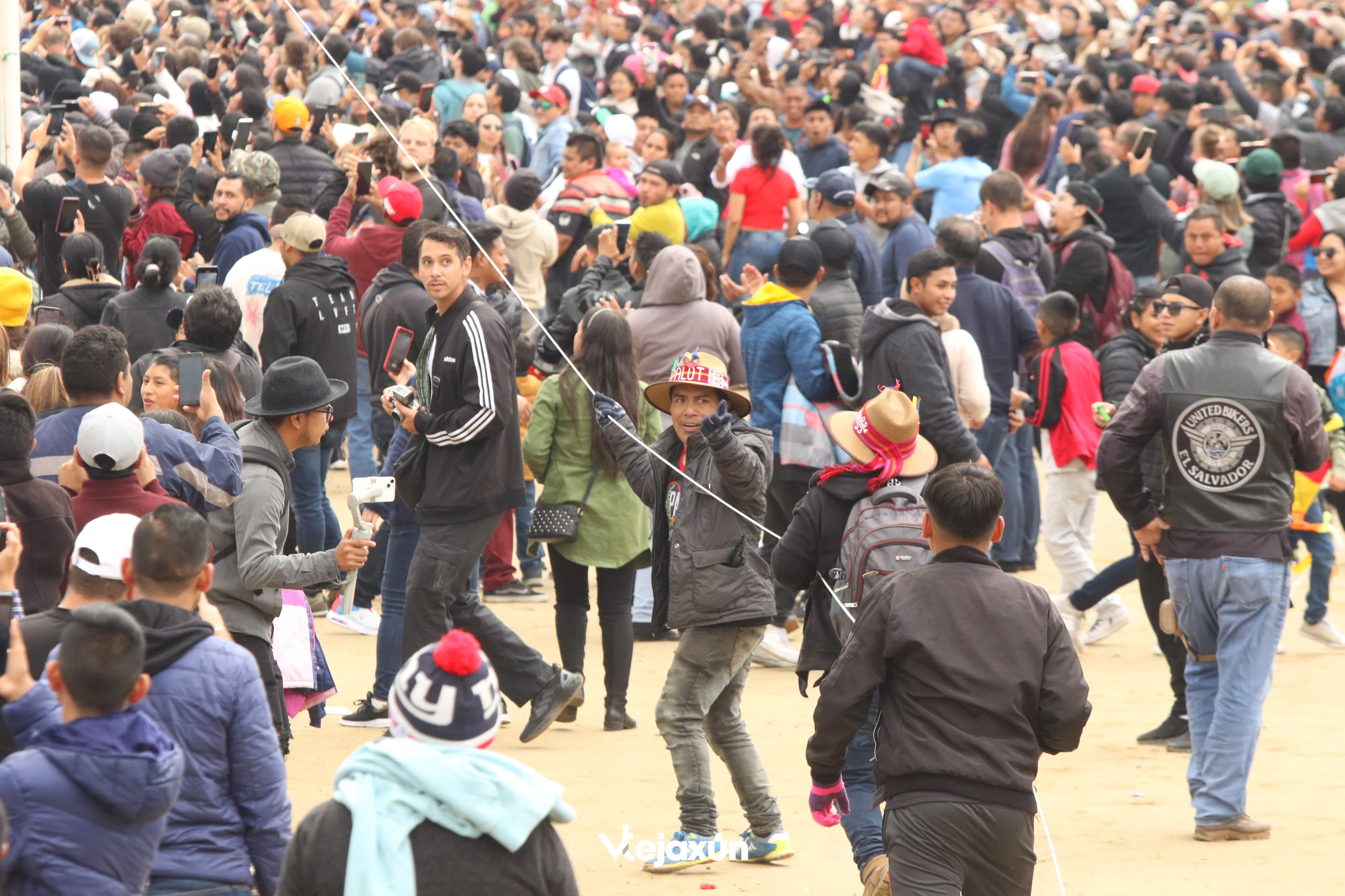 Las categorías “a”, “b”, “c” y femenina esperaron el mejor momento para levantar sus barriletes comprendidos entre los 4 a 18m de longitud, el espectáculo lo iniciaron las agrupaciones “Ik’al Aj”, Almas del Viento y “Paloth” Espanta Espíritus, con obras relacionados a la naturaleza, cosmogonía maya y en memoria de los difuntos.
